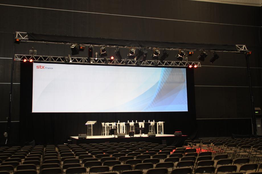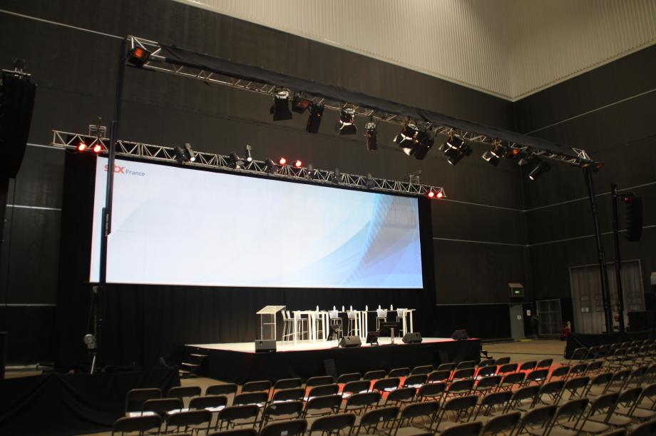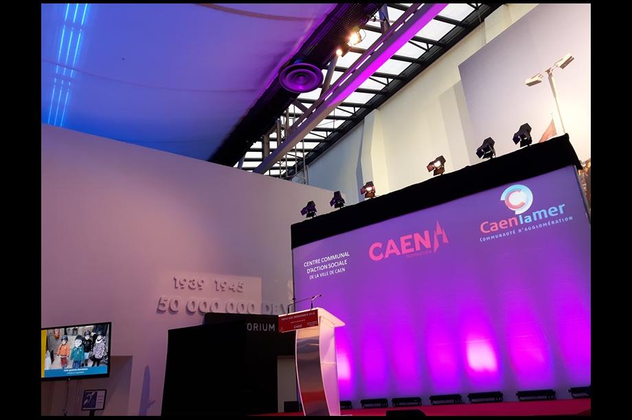 Fournitures techniques son & lumières pour 4 000 personnes, dans le hall 3 du parc des exposition de Caen.