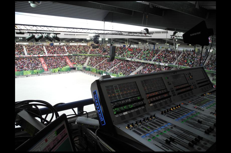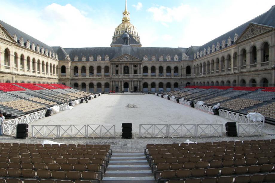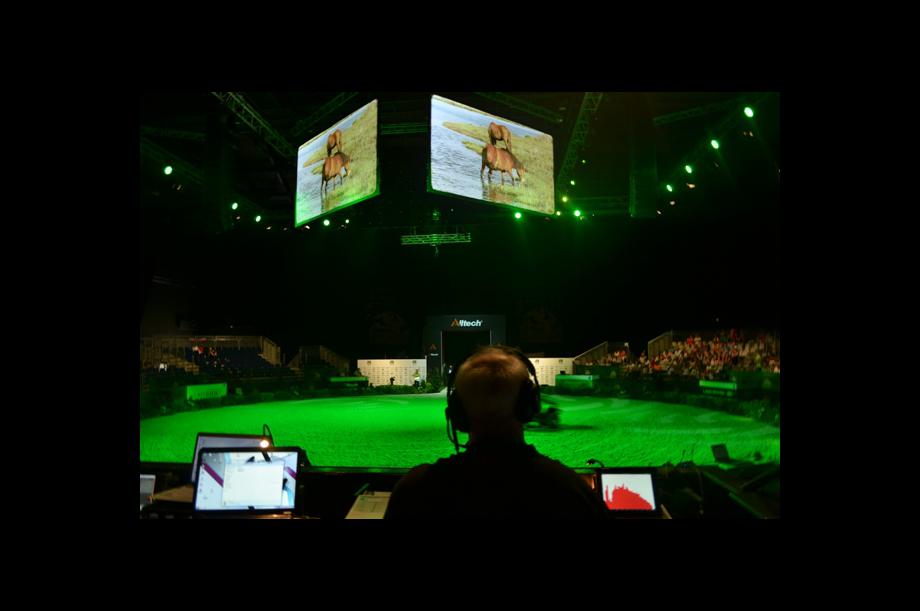 Transformation du Zénith de Caen en piste pour les épreuvres de Voltige des Jeux Equestres Mondiaux FEI Alltech en Normandie 2014.